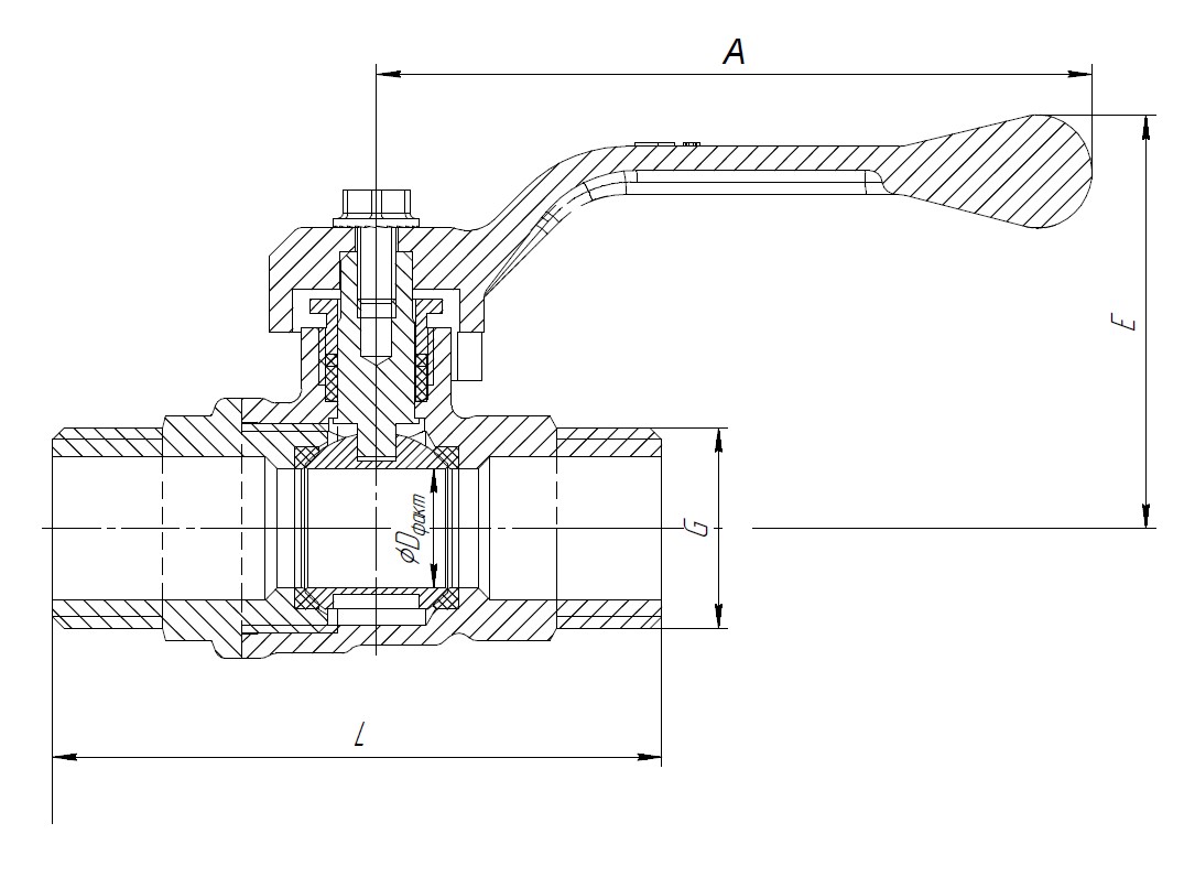 | Артикул | DN | PN | L | А | Е | D | G | Масса, г | Коробка / шт | |