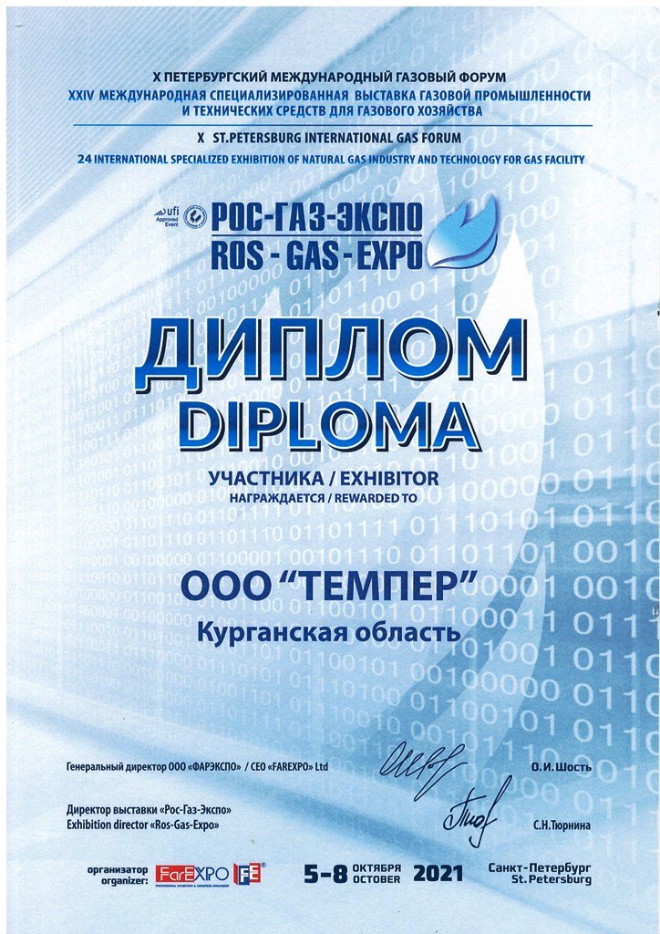 С 5 по 8 октября 2021 года в Санкт-Петербурге в КВЦ «Экспофорум» в рамках X Петербургского международного газового форума состоялась XXIV Международная специализированная выставка газовой промышленности и технических средств для газового хозяйства, в которой компания "Темпер" приняла активное участие. На выставке TEMPER представил линейку продукции для газовых систем, в т.ч. новинку 2021 года: фильтр газовый.